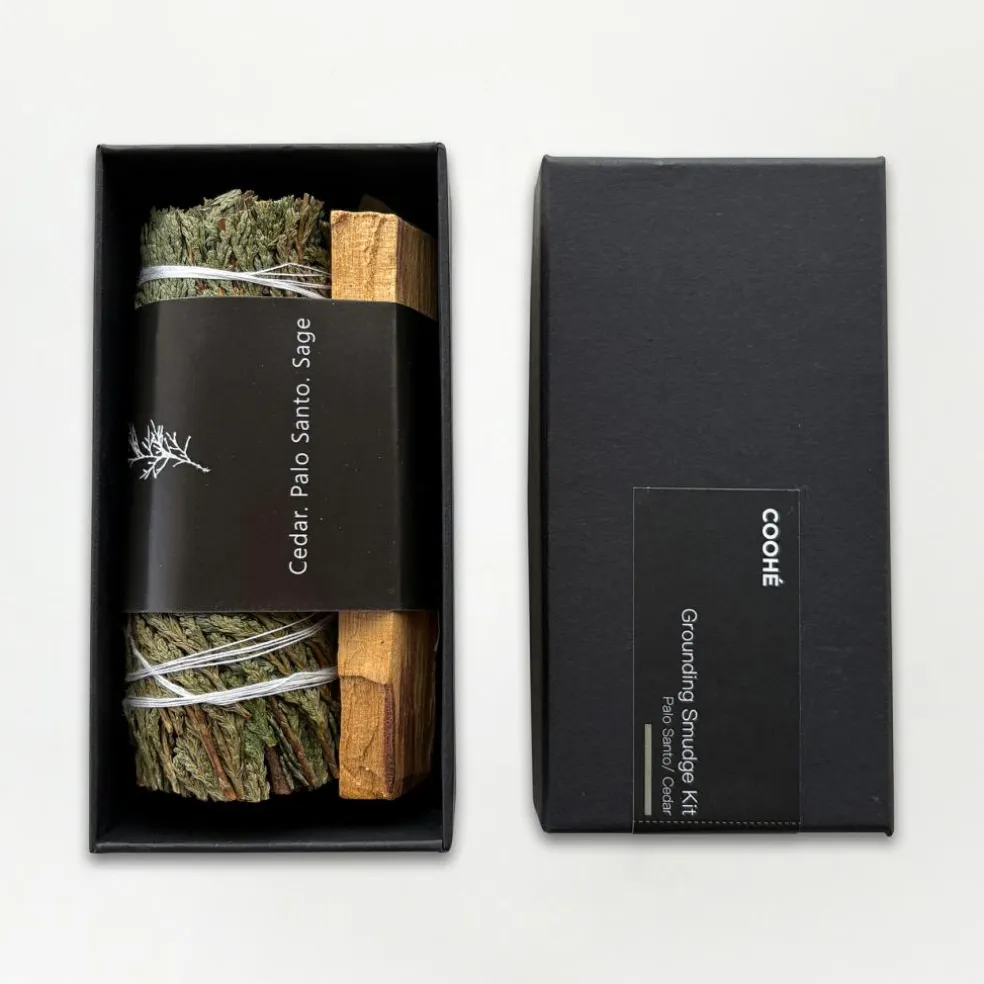 Tænd forsigtigt enden af Palo Santo eller Ceder bundle i ca. 20–30 sekunder, pust flammen ud, og lad den gløde, så en blid røg udfolder sig.