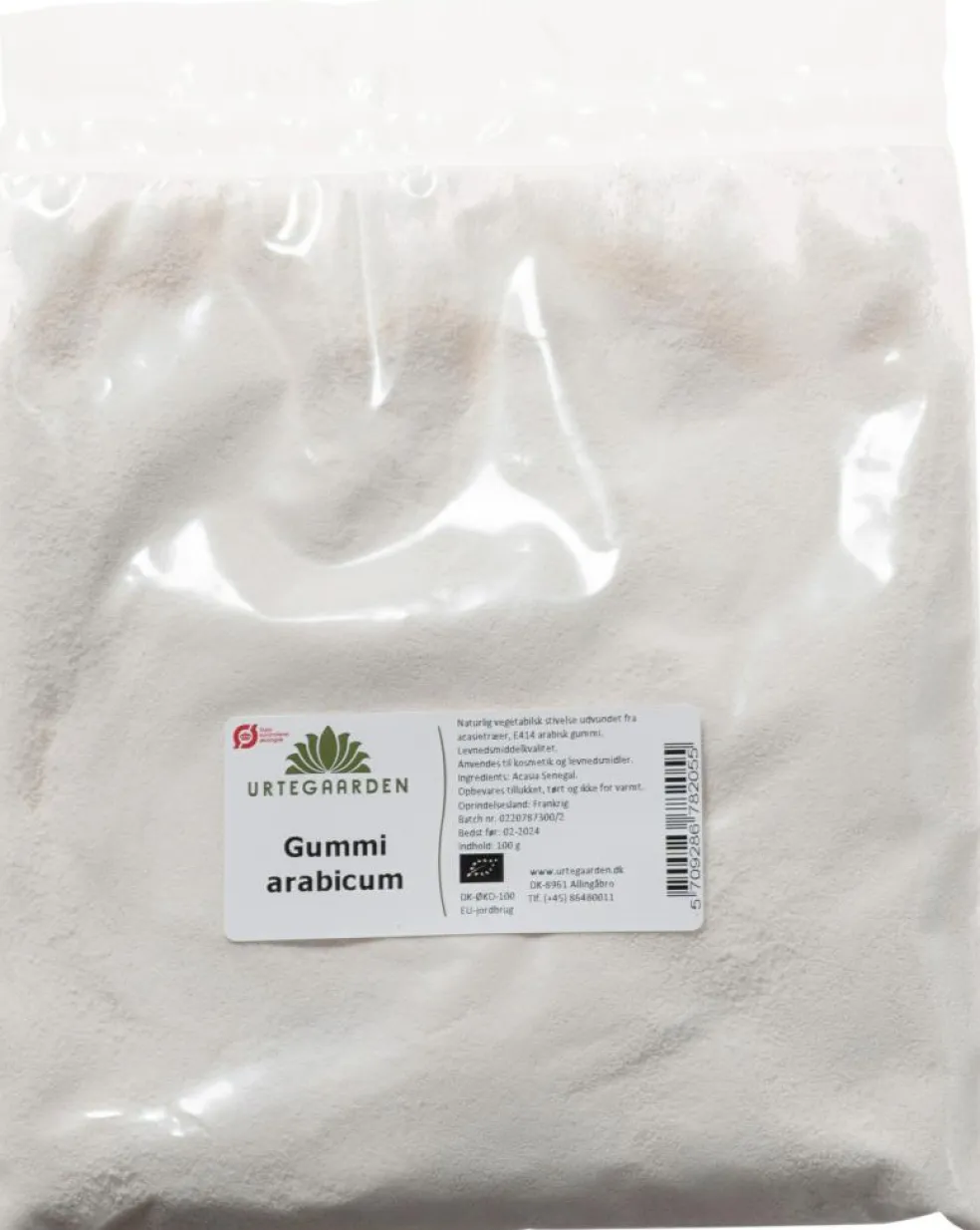 Økologisk gummi arabicum er et pulver, der anvendes i hjemmelavet lakrids o.l. Gummiarabicum kaldes også akaciestivelse eller arabisk gummi.