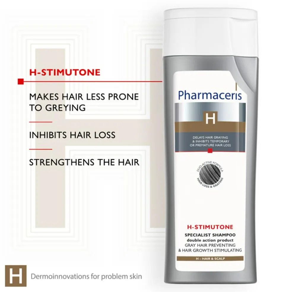 D-panthenol og kationiske polymerer med beroligende og regenererende egenskaber gendanner hovedets naturlige pH-værdi og hjælper med at opretholde optimal hydrering.For at forbedre hårvækststimulerende virkning anvendes shampooen i kombination med Pharmaceris H-STIMULINUM balsam og produkt H-STIMUFORTEN.