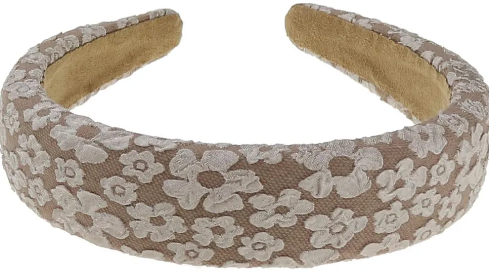Hårbøjle med skuf og brokade stof. Bredde 3 cm.
