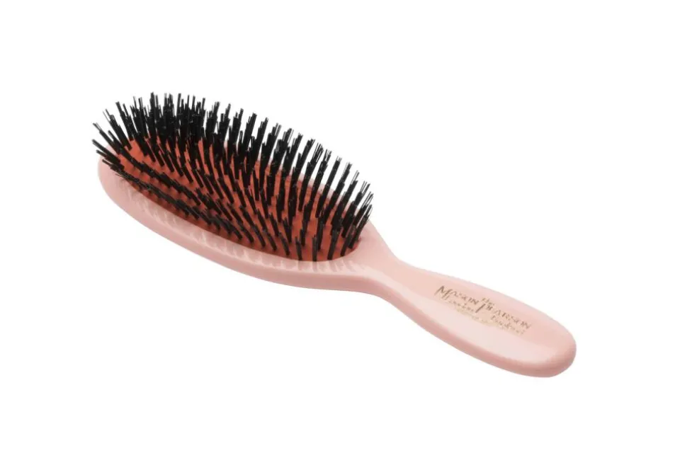 Trods sin størrelse leverer denne luksuriøse, håndlavede hårbørste samme høje kvalitet med vildsvinehår, som Mason Pearson udelukkende fremskaffer etisk i premium kvalitet – et naturligt materiale, udvalgt for dets evne til at stimulere hovedbunden og fordele hårets naturlige olier jævnt fra rod til spids. Et uundværligt step i enhver hårplejerutine!