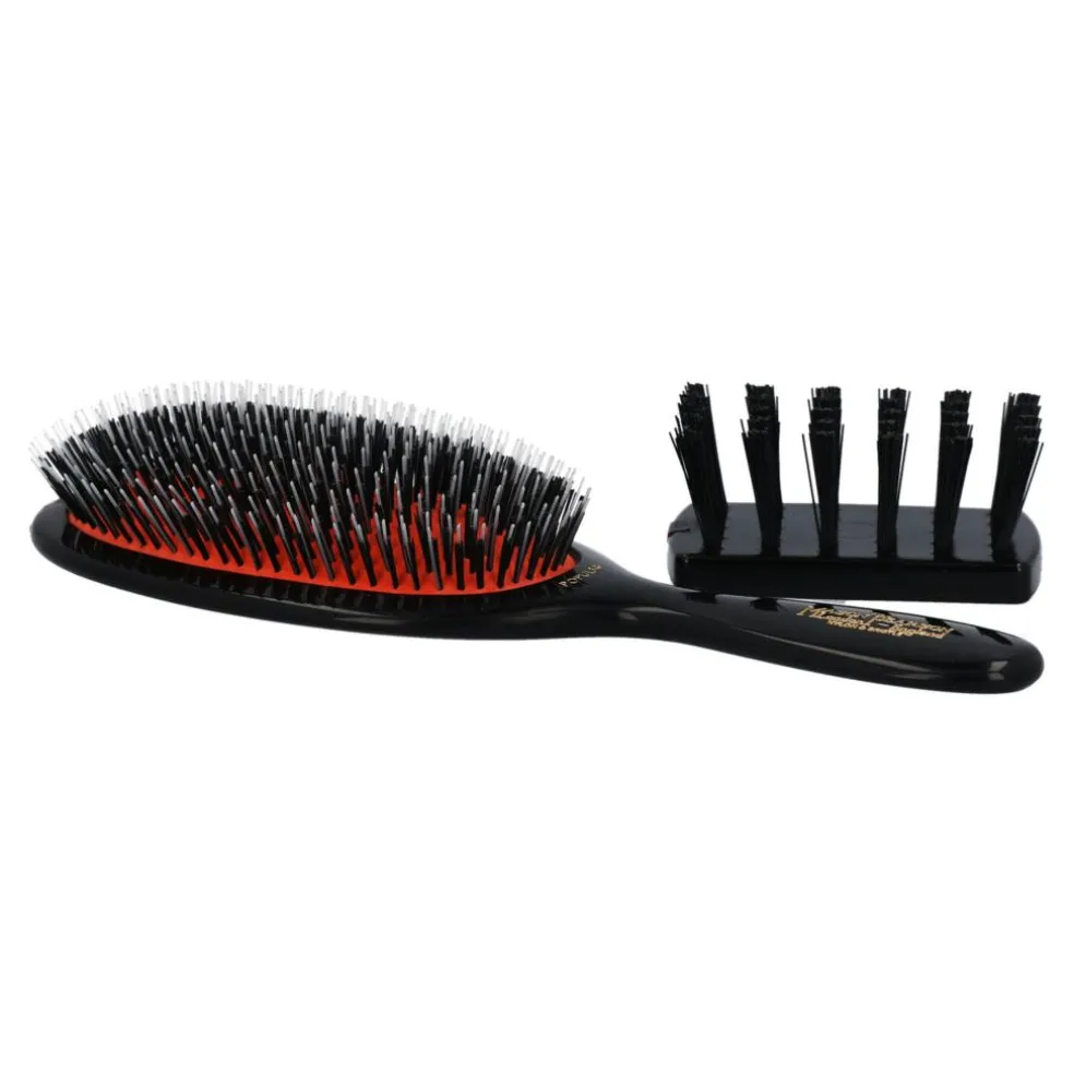 Hver lille detalje er gennemtænkt! En specialdesignet rensebørste medfølger for nem fjernelse af hår. Det anbefales at købe Mason Pearson Hairbrush Cleaner Spray for at vedligeholde børstens sublime tilstand i årenes løb.