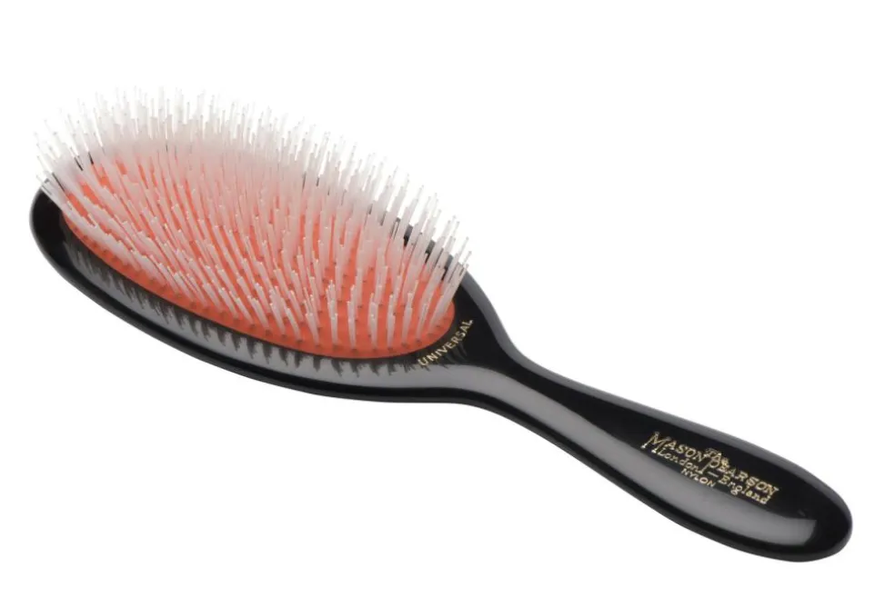 Denne luksuriøse hårbørste er håndlavet med stærke nylonbørstehår, der fungerer som en effektiv detangler, der skånsomt løsner og udreder sammenfiltringer i håret. Hovedbunden stimuleres med en blid masserende effekt, samtidig med at både hår og hovedbund beskyttes under udredning. Den ikoniske orange Mason Pearson gummipude former sig efter hovedbunden og sikrer en fleksibel, behagelig og stressfri børsteoplevelse.