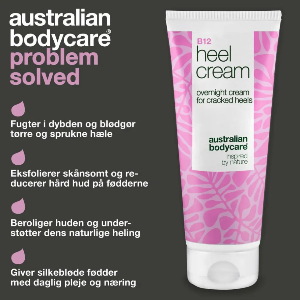 Lider du af tørre fødder, revnede hæle eller hård hud? Vores hælkrem med 25% urea og Vitamin B12 giver intensiv fugt og pleje til selv den tørreste hud.