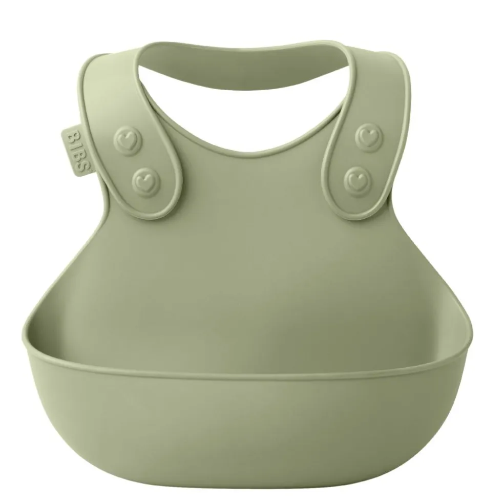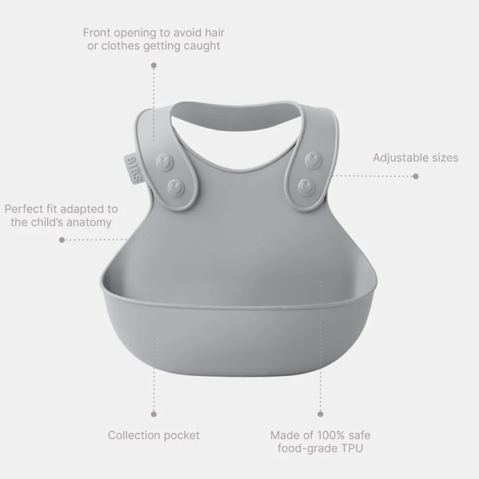 Den åbnes foran og har en smart lomme, der både er blød nok til at blive presset mellem barnet og bordet, men hård nok til ikke at bøje og spild mad og væsker.