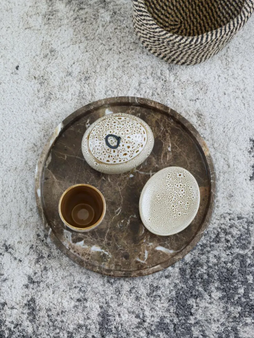 Det runde Hammam fad i marmor er ideelt til at have flere elementer stående til at pynte på.
