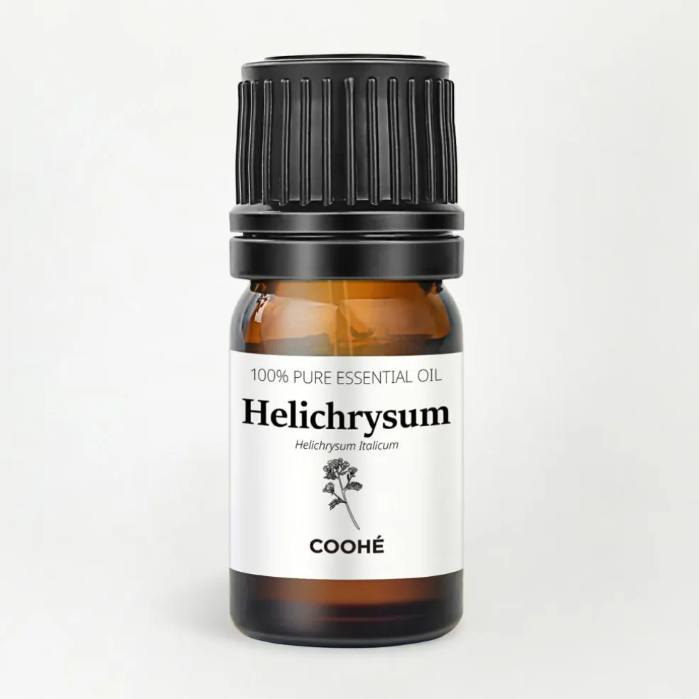 Helichrysum olie udvindes fra blomsterne af Helichrysum italicum og er kendt for sine antiinflammatoriske, helende og antioxidant-egenskaber. Den hjælper med at berolige irriteret hud, støtte hudens naturlige regenerering og fremme en sund hudbarriere. Fordele: Beroliger og lindrer irriteret hud Understøtter hudens naturlige helingsproces 100% ren, naturlig æterisk olie Anvendelse: Hudpleje: Fortynd med bæreolie før påføring – må aldrig bruges ufortyndet Aromaterapi: Tilføj et par dråber til diffuser for en beroligende og opfriskende atmosfære Massage: Kan anvendes i små mængder i massageblandinger Bemærkning: Må ikke påføres direkte på huden uden fortynding. Test altid på et lille hudområde først. Opbevares utilgængeligt for børn og væk fra direkte sollys. Oprindelse: ITALIEN