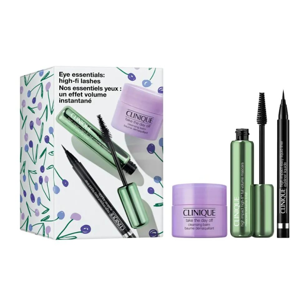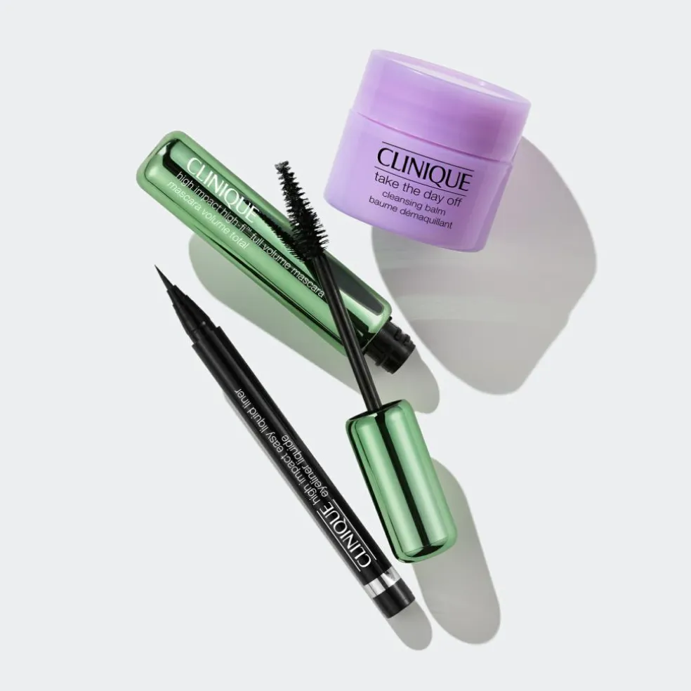 En makeuptrio, der giver skarpe eyelinervinger, dramatiske vipper og en blid, men effektiv rens.