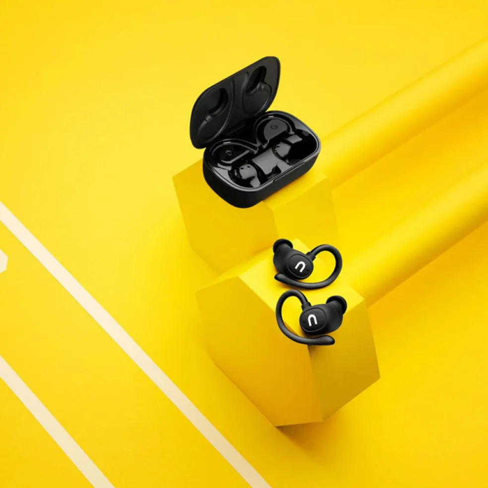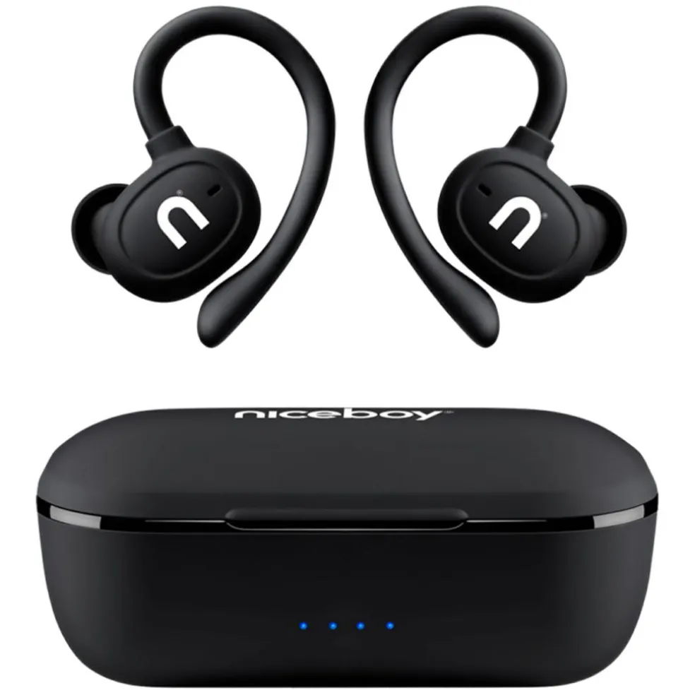 - Perfekt til sport: Ørebøjler giver en sikker og behagelig pasform under bevægelse.