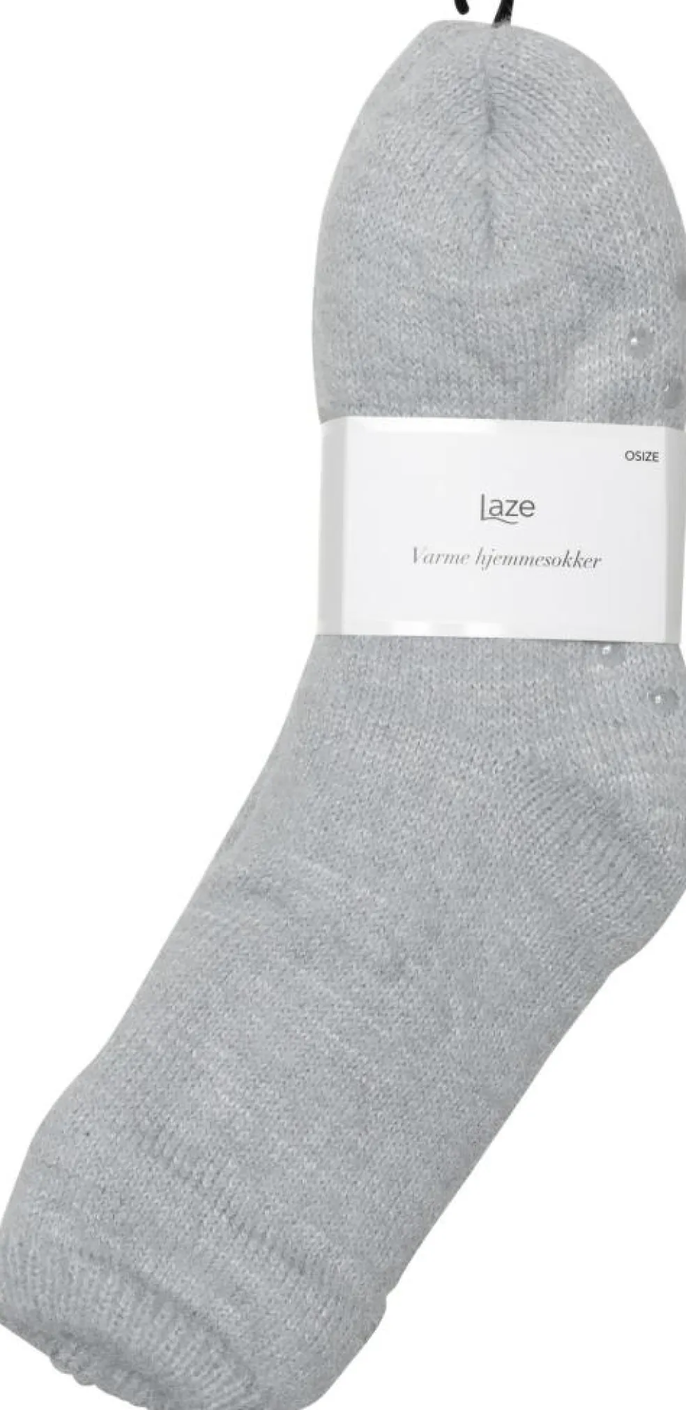 Bløde og varme hjemmesokker med foer i grå med skridsikre dutter. 70% Polyacryl, 30% Polyamid