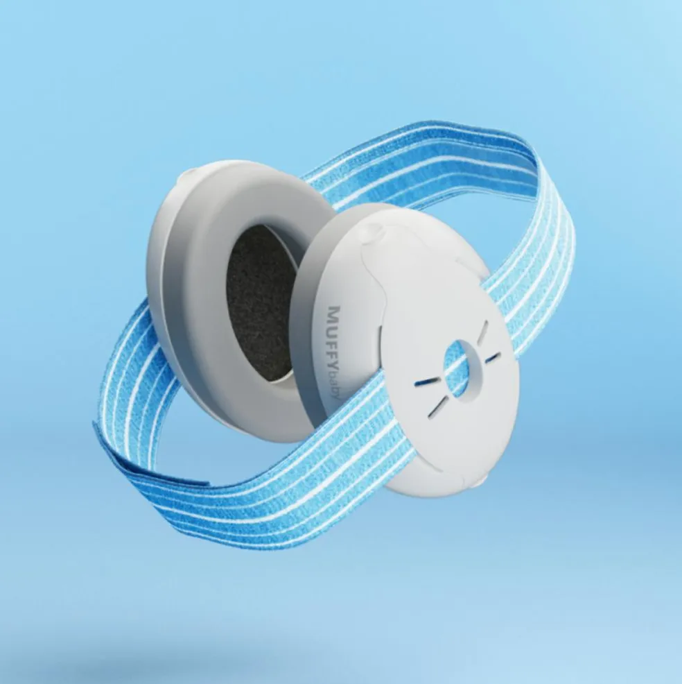 Muffy Baby er fremstillet af flere lag behageligt skum, der sikrer optimal pasform og tilpasning omkring ørerne. Det skridsikre hovedbånd sikrer, at høreværnet bliver på plads, mens den diagonale placering ikke udøver tryk på fontanellen.