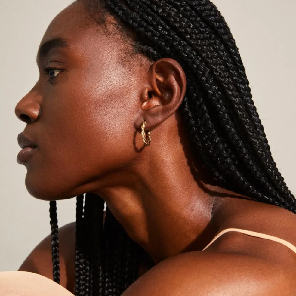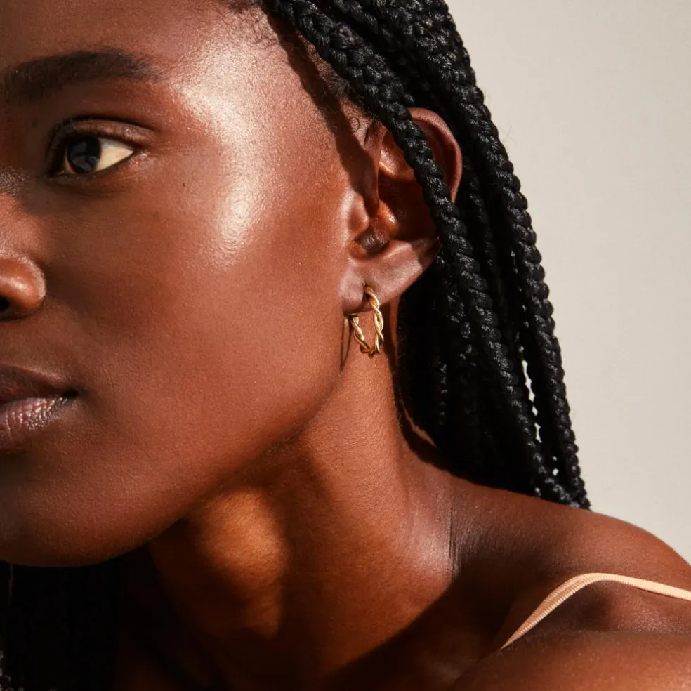 Twist it up! NAJA creoler med snoet design, der giver et nyt twist på de klassiske hoops. De snoede detaljer fanger lyset smukt i de guldbelagte ringe og tilføjer et elegant touch til dit look. Style dem med en strikket sweater for et cozy chic look. Et par øreringe, der hurtigt bliver en go-to favorit i din samling.