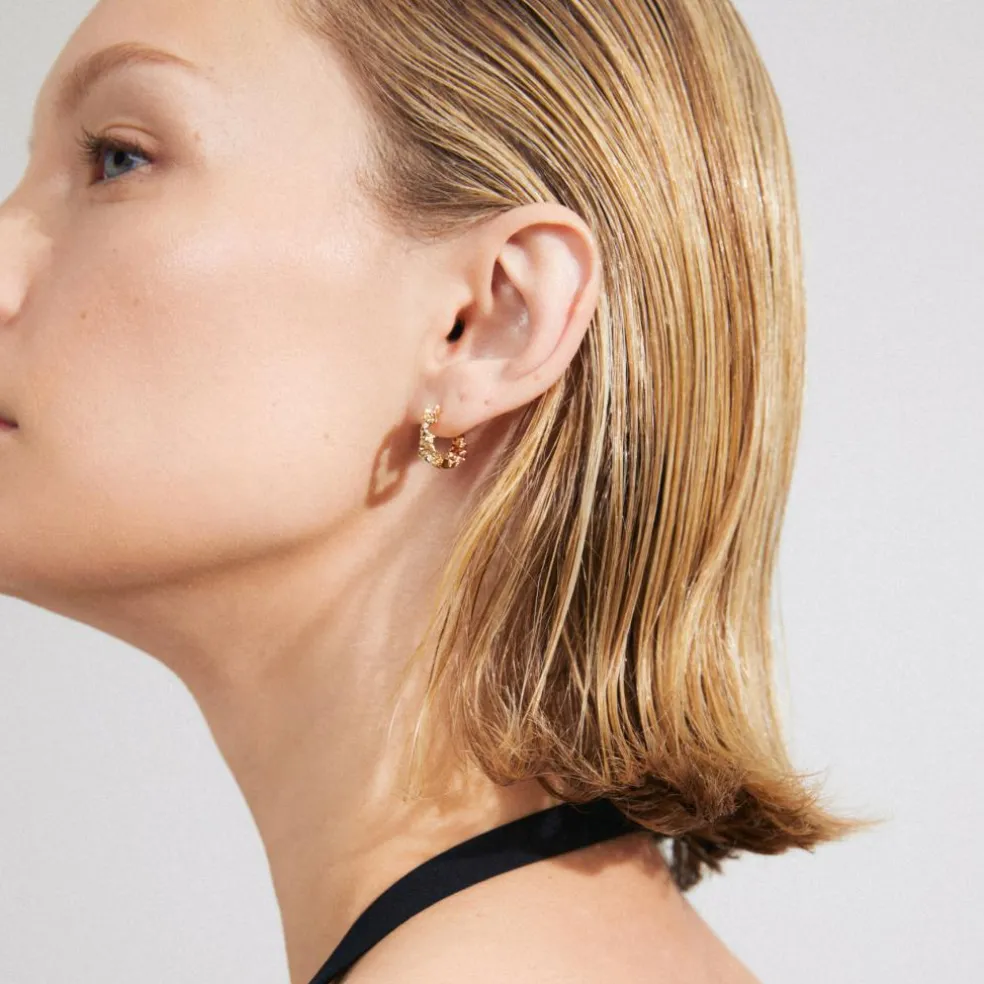 Trust your journey, og tag dit look til næste niveau med Pilgrims TRUST øreringe. De rustikke guldbelagte huggie hoops leverer en organisk charme og en handcrafted feel, der er ideel til at spice dine everyday outfits op. En letanvendelig kliklås gør dem nemme at style på farten, hvor det rustikke udtryk komplementerer sæsonens knitwear og bløde tekstiler. Øreringene er mindfuldt fremstillet med 99% genanvendt materiale – det er fashion med omtanke.