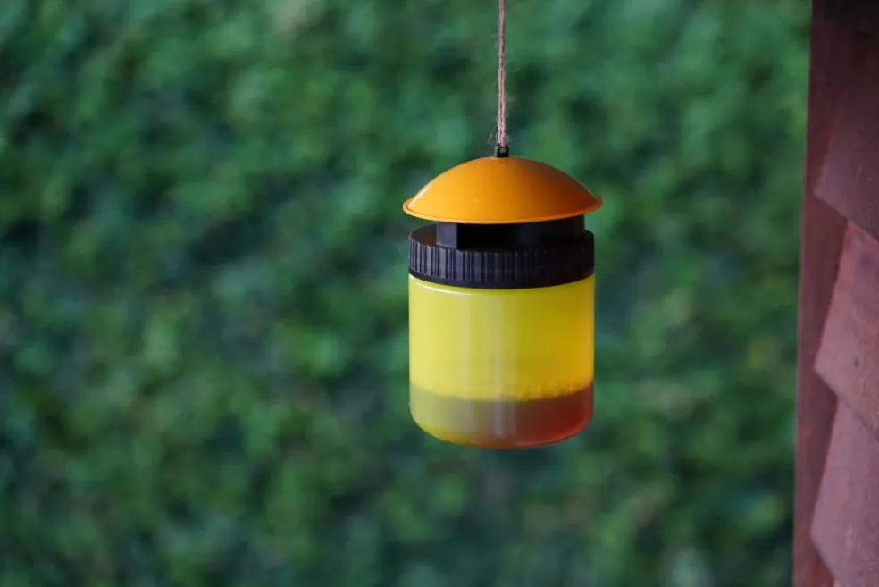 ECOstyle Hvepse Fri Hvepsefælde indeholder et 100% giftfrit lokkemiddel, som får hvepse, gedehamse og almindelige arter af fluer (f.eks. husflue og spyflue) til at flyve ned gennem hullerne i låget.
