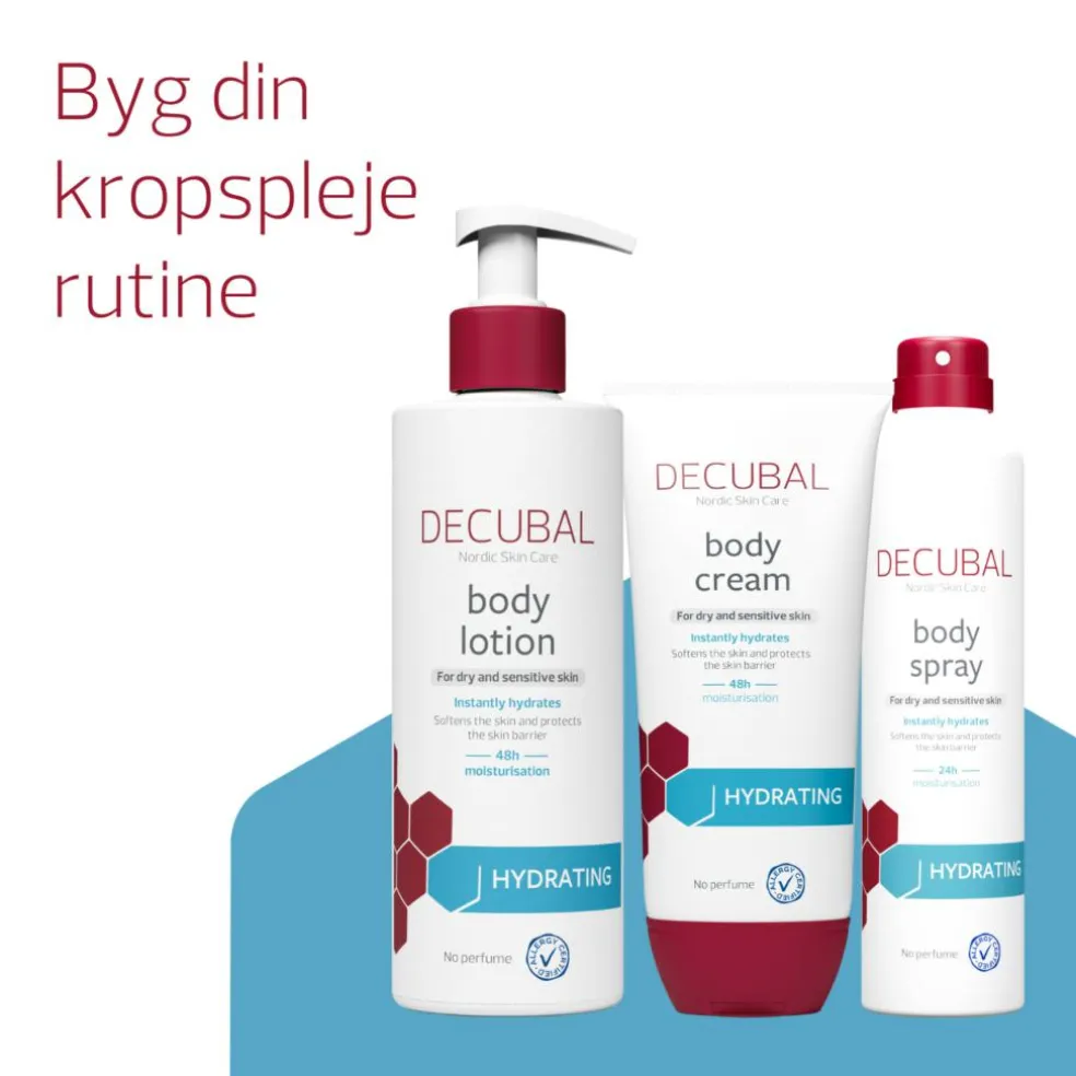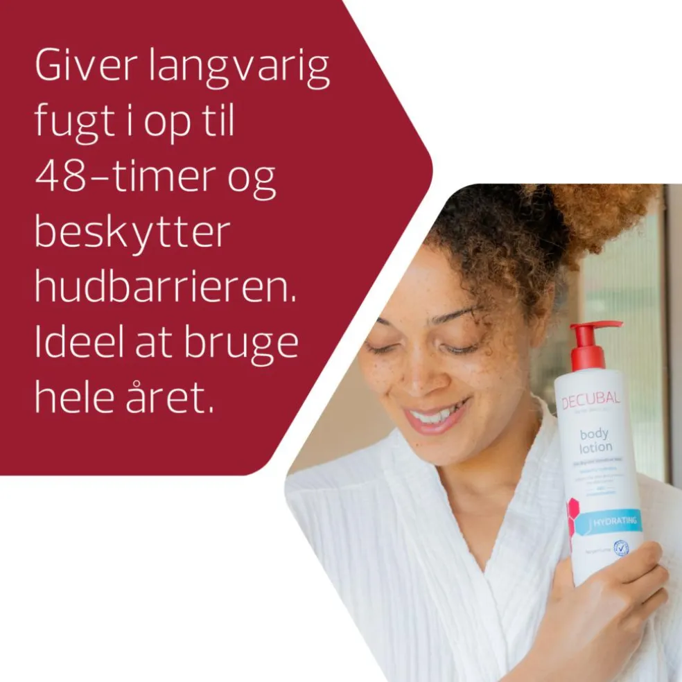 Decubal body lotion trænger hurtigtind uden at fedt og efterlader huden blød og smidig.