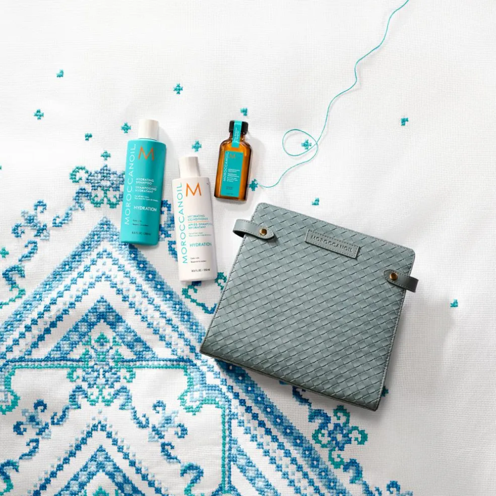 Moroccanoil Holiday Kit Hydration er en eksklusiv, limited edition julegaveæske bestående af en luksuriøs toilettaske, som inkluderer en hårplejerutine med Hydration produkter, velegnet til tørt og normalt hår.