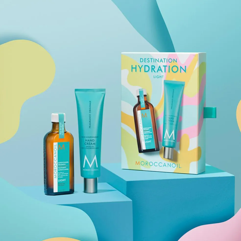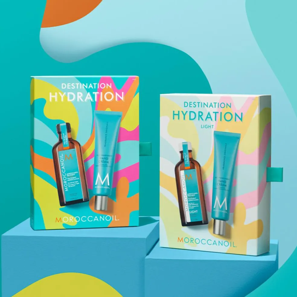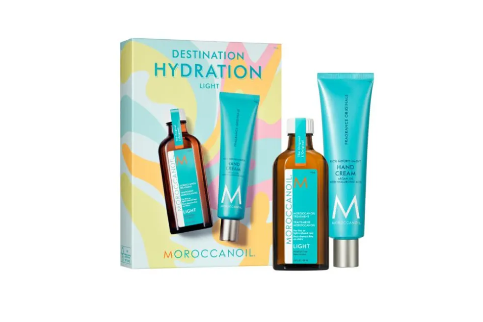 Moroccanoil Destination Hydration Original er en fugtgivende duo bestående af Moroccanoils Best Sellers; Treatment Original og Hand Cream. Begge produkter er beriget med nærende arganolie, som er rig på E-vitamin, essentielle fedtsyrer og antioxidanter, der tilfører intensiv fugt og dybdegående pleje til håret samt huden. Begge produkter er ligeledes med Moroccanoils ikoniske signaturduft ”Fragrance Originale”, som er en blanding af krydret rav og søde blomsternoter. Én duft, der henleder til det eksotiske middelhavsområde og vækker sanserne.