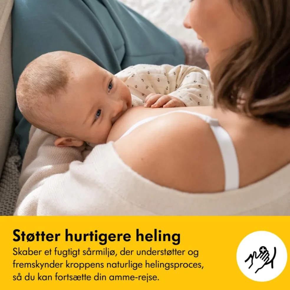 - Danner en beskyttende pude over følsomme eller ømme brystvorter