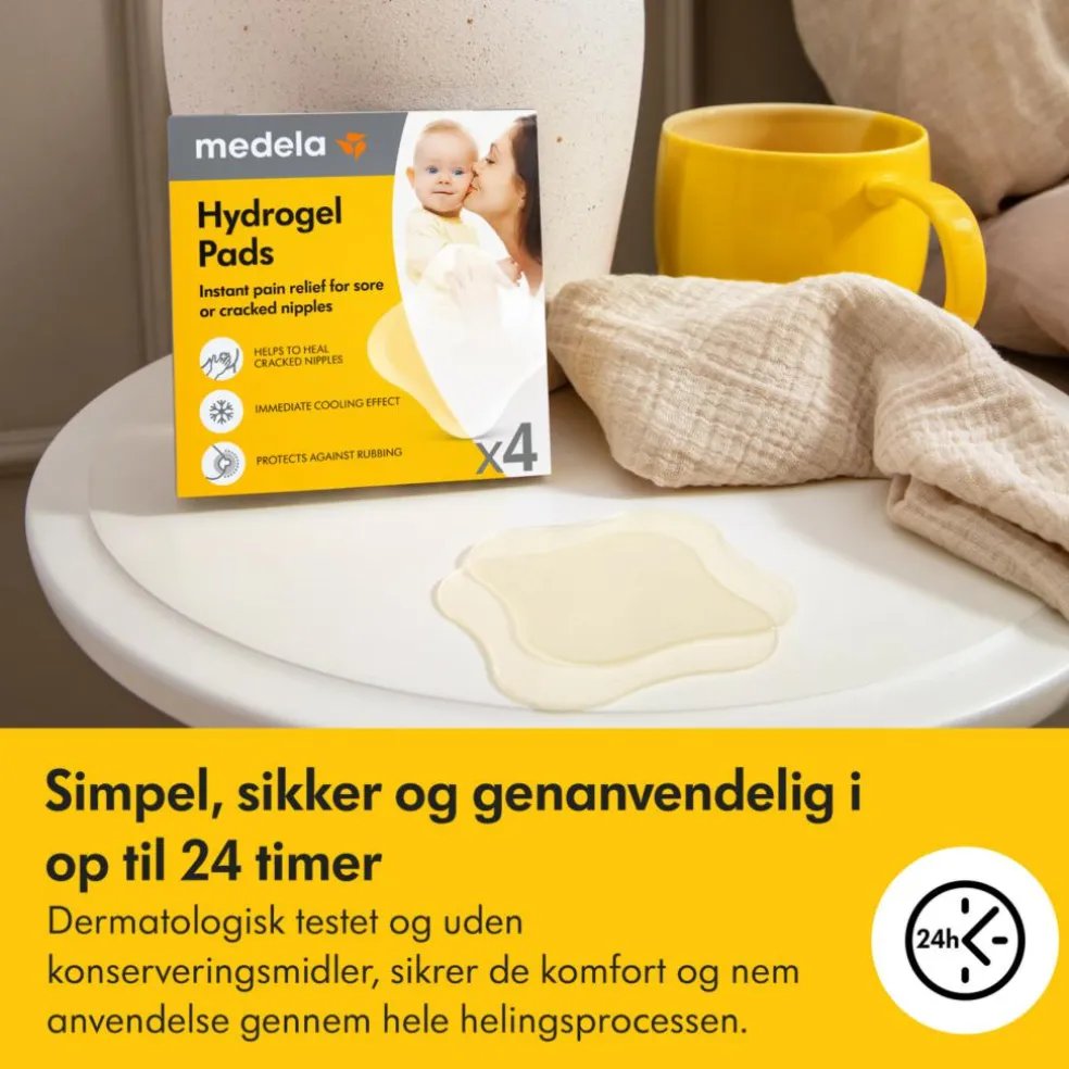 Medelas hydrogelindlæg er specialudviklede, så de danner en beskyttende pude, der afkøler huden ved kontakt og fremmer helingsprocessen. De er store nok til at dække din brystvorte og areola (den mørkere hud omkring brystvorten), som begge kan blive ømme.