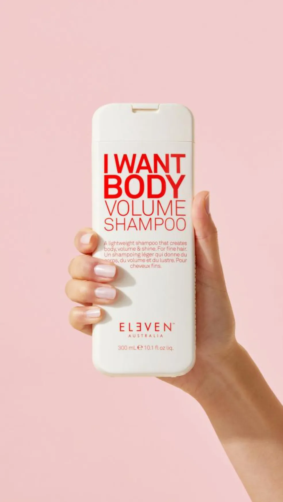 I Want Body Volume Shampoo fra Eleven Australia har en duft af lime og basilikumsthe.