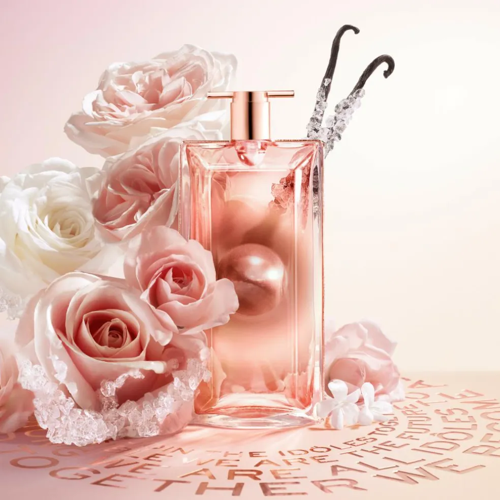 Idôle Aura er den første duft i Idôle familien, der står selv. Flakonens aura er som en strålende glorie – stærk og frygtløs, et vibrerende rosenrødt gyldent hjerte, der udstråler solens stråler og vores indre styrke.