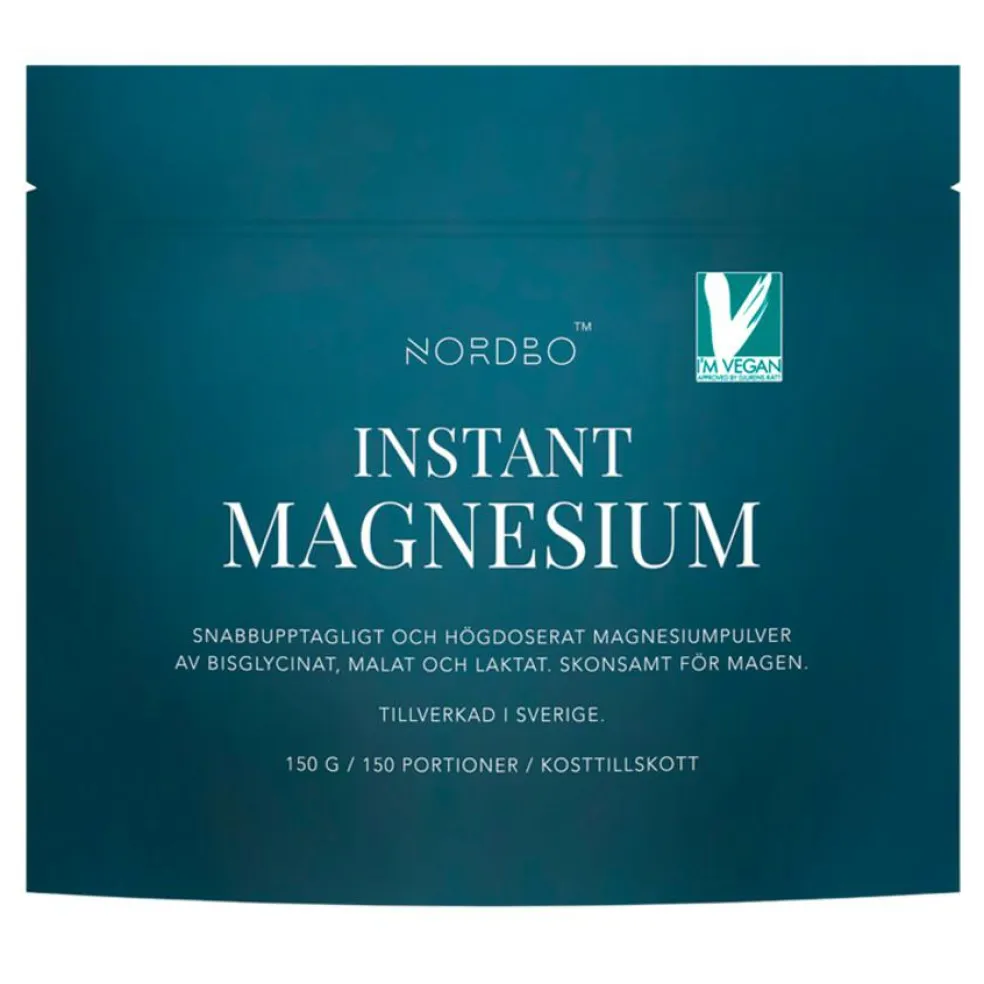 NORDBO Instant Magnesium er et vegansk magnesiumpulver, der består af tre biotilgængelige former: bisglycinat, malat og lactat.