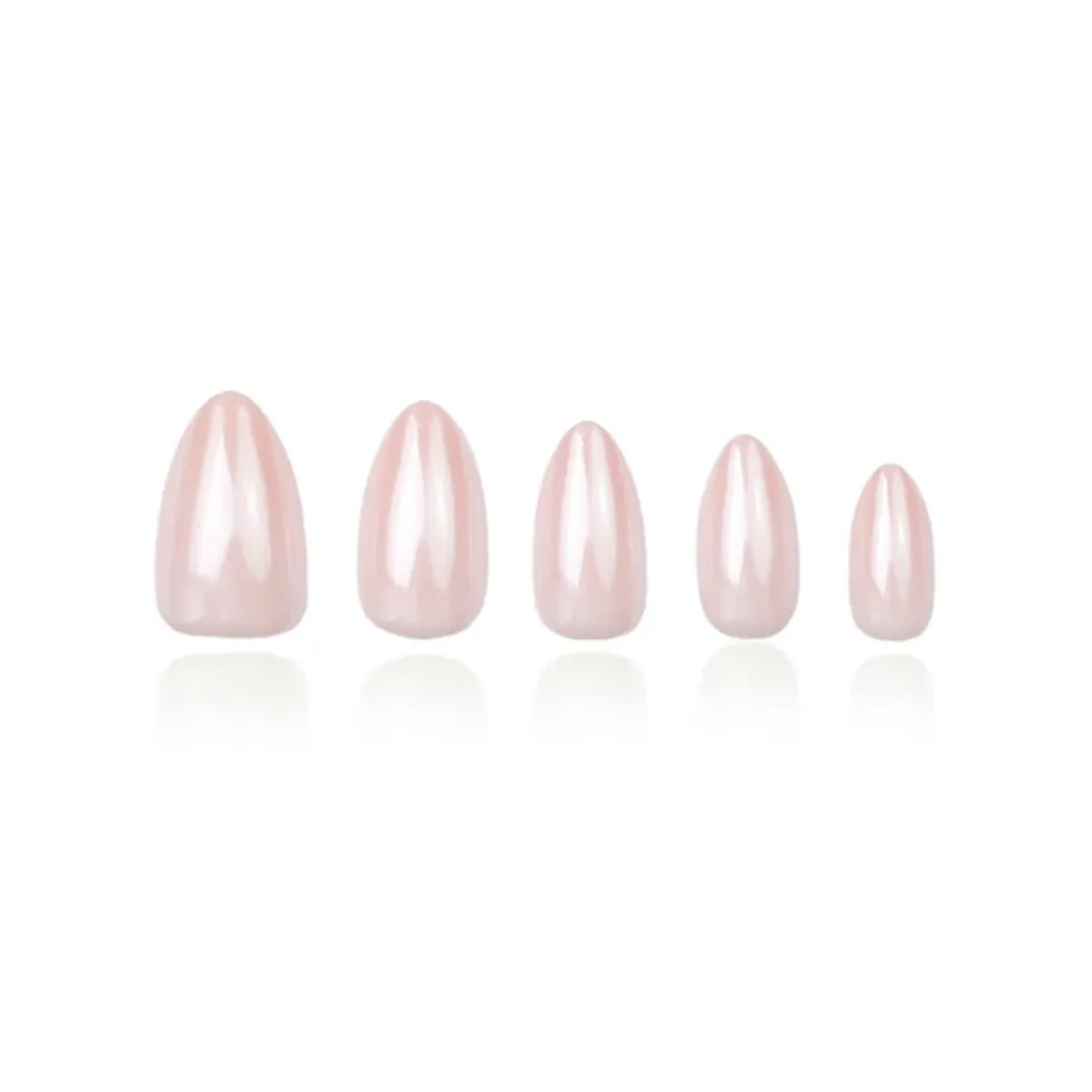 Disse press-on negle er designet i en klassisk mandelform og inspireret af den populære ‘Glazed Donut’ trend, hvilket giver neglene en lækker, skinnende finish som en donut dyppet i glasur. Den medium længde gør dem både stilfulde og praktiske til hverdagsbrug.