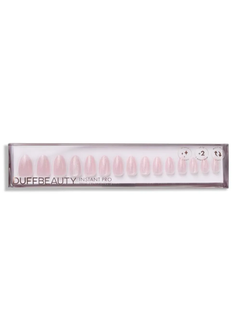 Pink Galaxy har et elegant og legende negledesign med en fin lyserød farve og glitrende effekt, der giver et festligt touch til ethvert look. Dette design er en del af DUFFBEAUTYs innovative Instant Pro Collection, der efterligner salon-neglens udseende og holdbarhed.