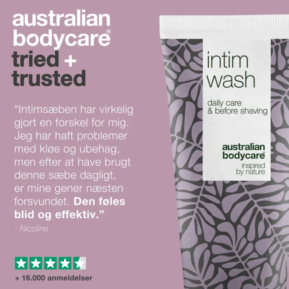 Intim Wash med australsk Tea Tree Oil og Lemon Myrtle modvirker bakterier i intimområdet, så du kan slippe for intime gener som lugt og kløe.