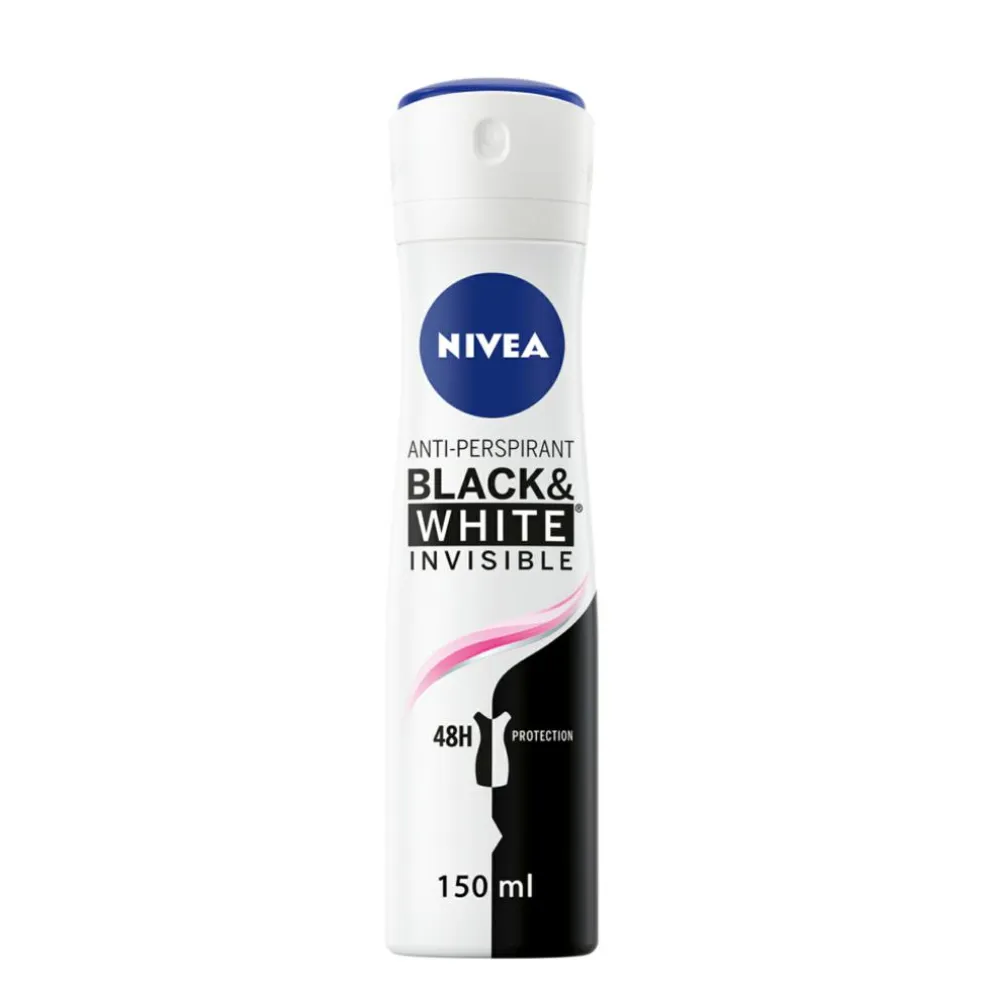 NIVEA Black & White Invisible Clear antiperspirant deodorant spray beskytter mod hvide og gule pletter på tøjet. Sort tøj forbliver sort mens det hvide tøj forbliver hvidt i længere tid. Den unikke formula beskytter dig i 48 timer mod sved og kropslugt samt plejer huden under armene. Den friske duft er forbundet af noter af blomster og en let frugtighed. Den behagelige duft gør det let at bruge deodoranten hele dagen og sikrer dig en langtidsholdbar duft og friskhed.