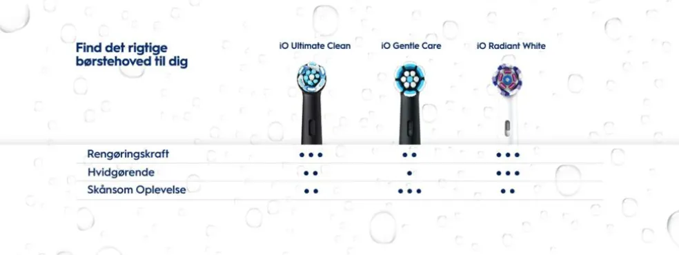 Oplev uovertruffen effekt med de eneste børstehoveder, der er designet eksklusivt til – og garanteret at passe til – din elektriske Oral-B iO-tandbørste.
