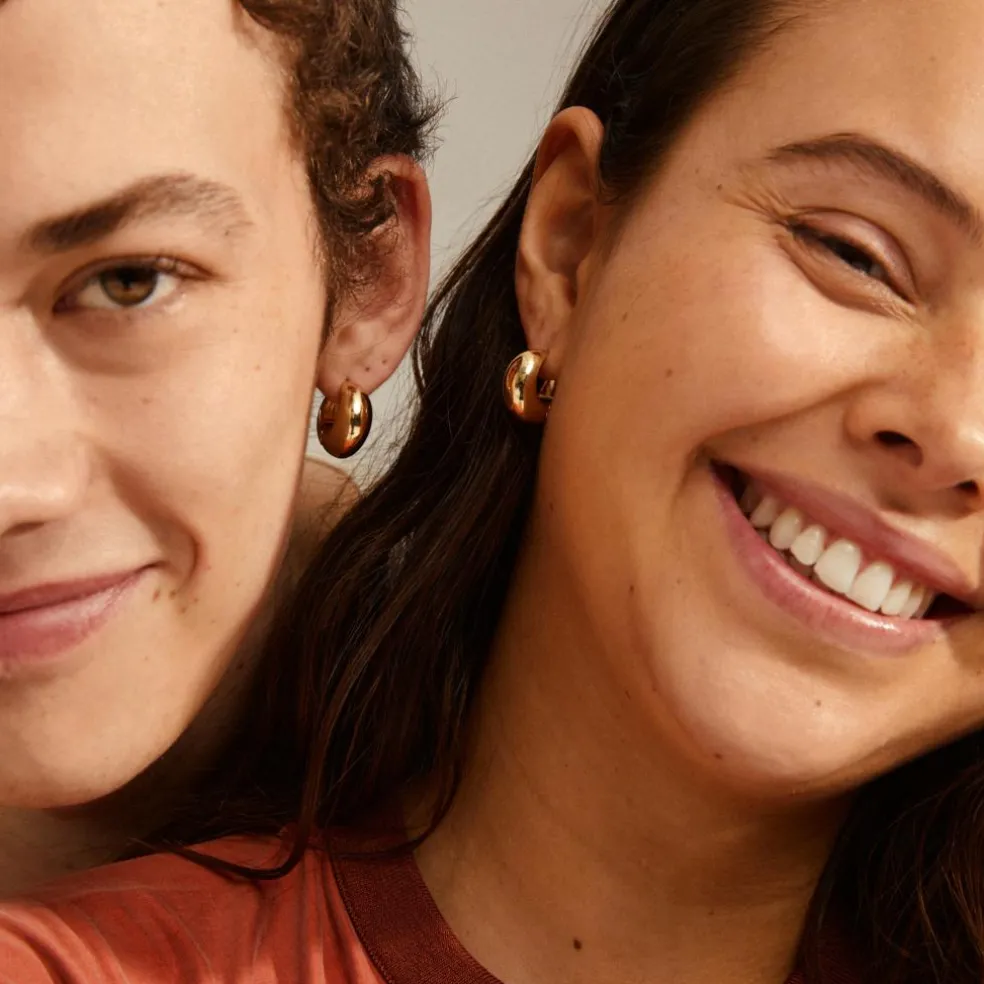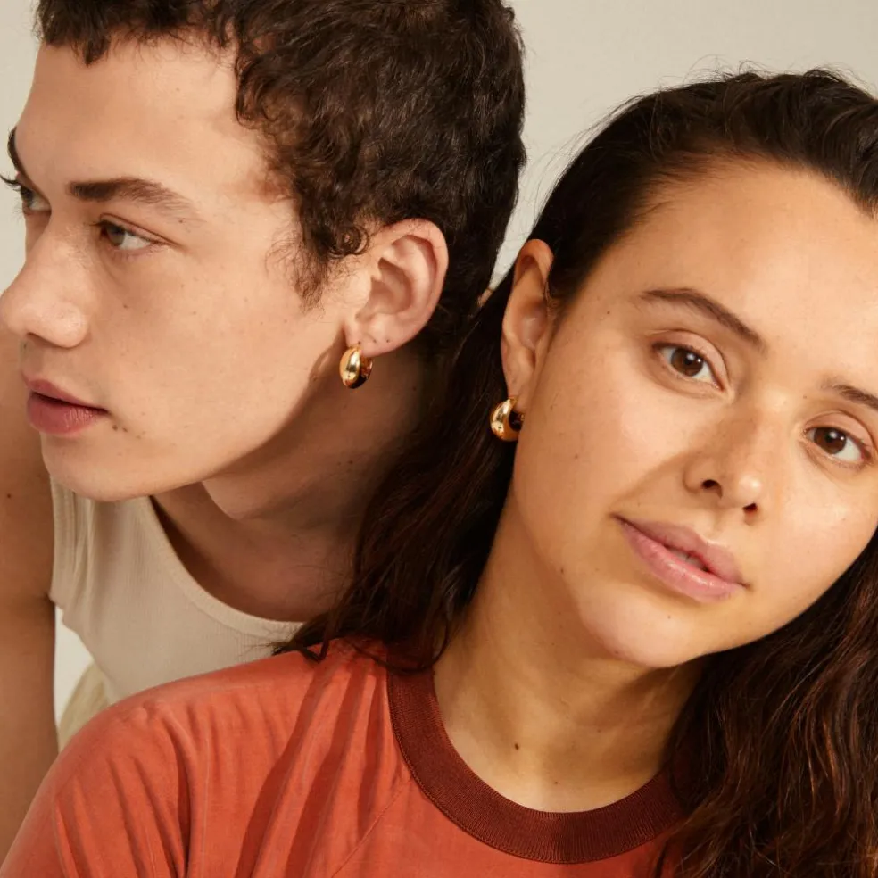 Dare to stand out. Guldbelagte wide hoops i et bredt og shiny design, er et oplagt favourite piece til ethvert outfit. Det super chunky silhouette giver et classy finishing touch og en elegant nordic feel. En tidløs all-time favourite. Øreringen har en letanvendelig klik-lås og er lavet af 99% genanvendt materiale.