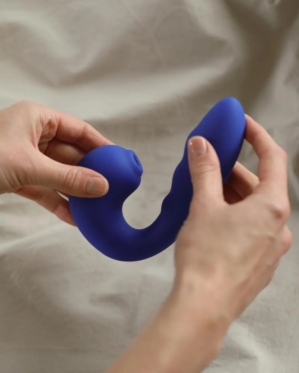 Iris er en kombineret vibrator og klitorisstimulator, og er formet til at kunne give dyb og fokuseret stimulering, på både g-punktet og klitoris.