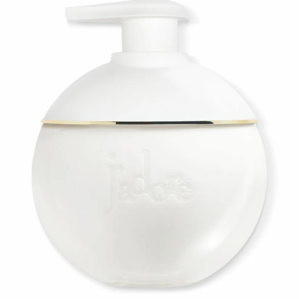Formlens opalhvide tekstur skinner igennem den gennemsigtige flakon, hvis kurver afspejler J’adore-perlen.