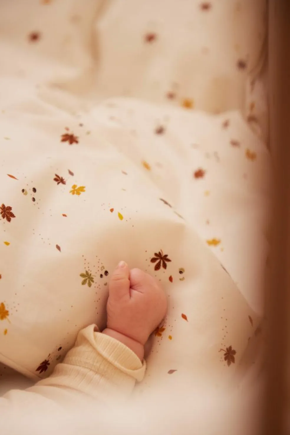 Vores sengetøj er produceret i økologisk GOTS-certificeret satinvævet bomuld, som er ekstra blødt for dit barn at ligge i.