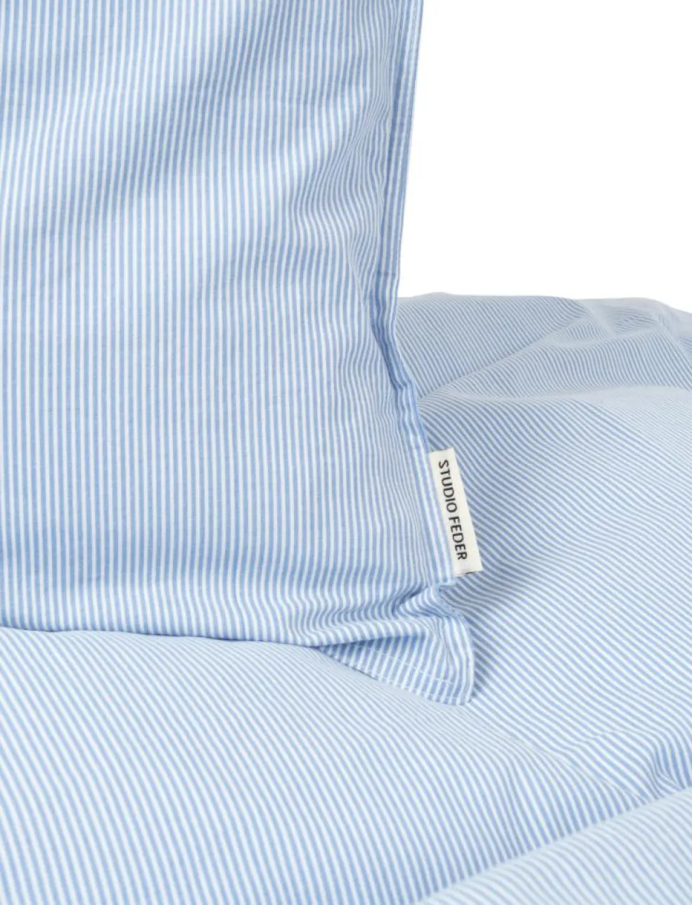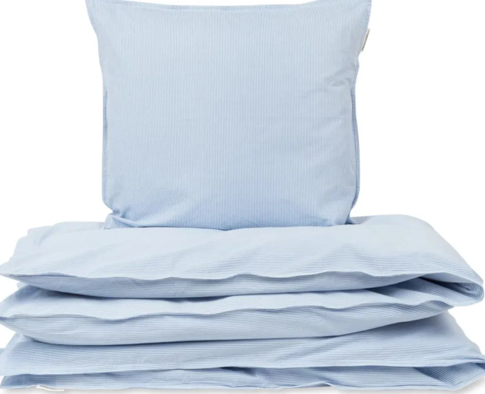 Pudebetræk i 40×45 cm med konvolutlukning og dynebetræk i 100×140 cm der lukkes med knapper.