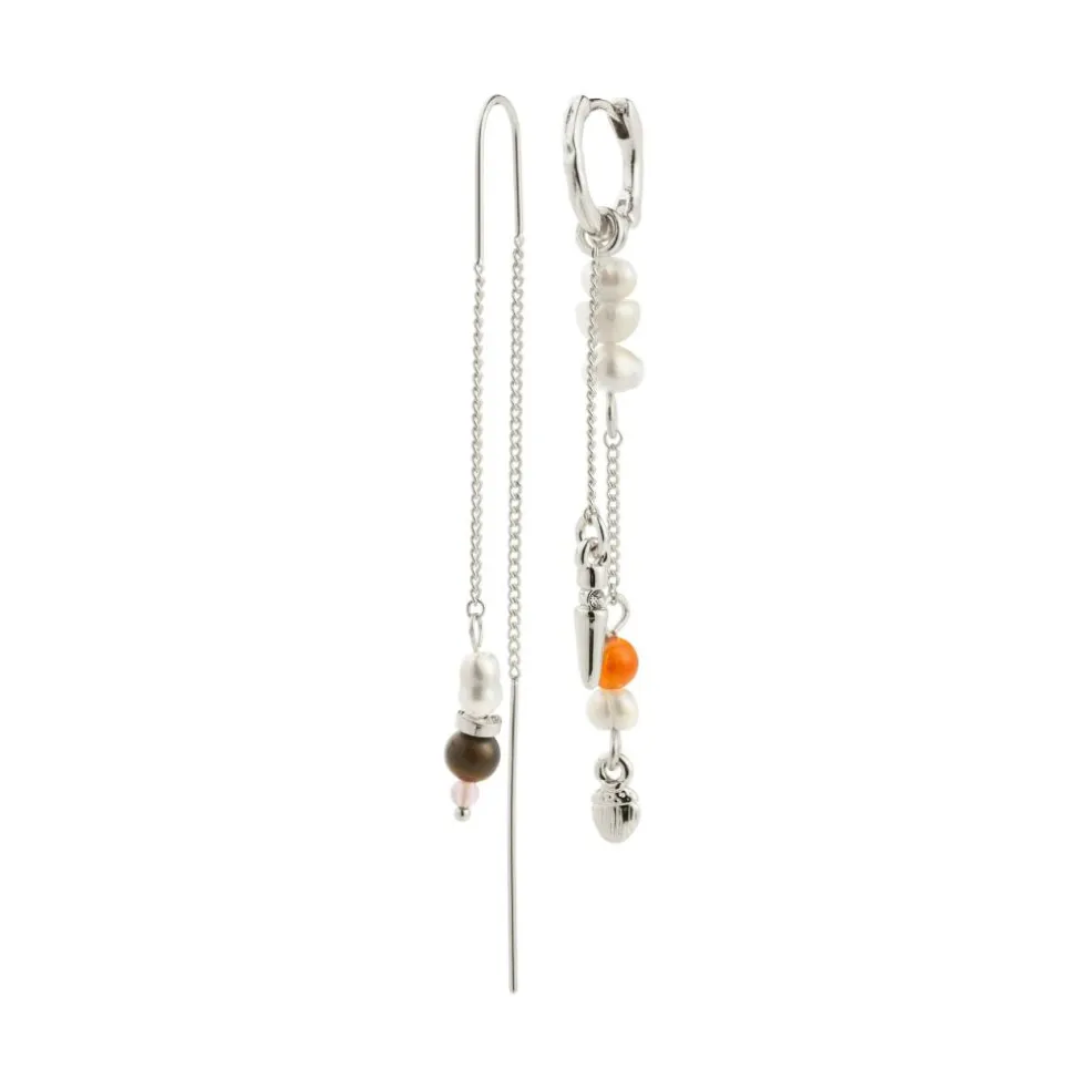 Sæt et magisk twist på dit look med de sølvbelagte BETWEEN kædeøreringe fra Pilgrim – en drømmende kombi af hoop og kæde i et eventyrligt, asymmetrisk design.