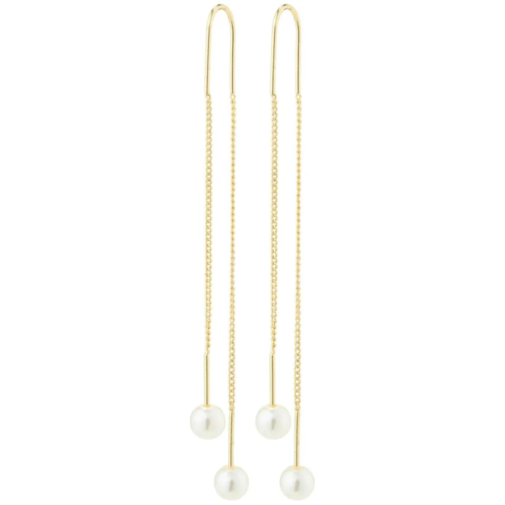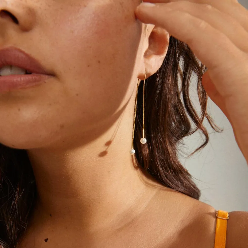 Chains and pearls – the perfect combination. Opnå et classic look med EUONIA øreringenes kombinationen af perler og kæder. Tag perlen af for at trække kæden gennem øret, og du vil have et elegant og eksklusivt piece til dine favourite outfits. Kombiner det romantiske og lette design med en cozy cashmere sweater for kontrast.