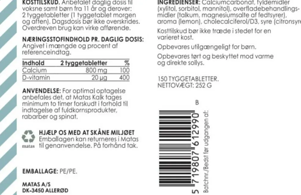 Calcium og D-vitamin bidrager til at vedligeholde normale knogler og tænder.