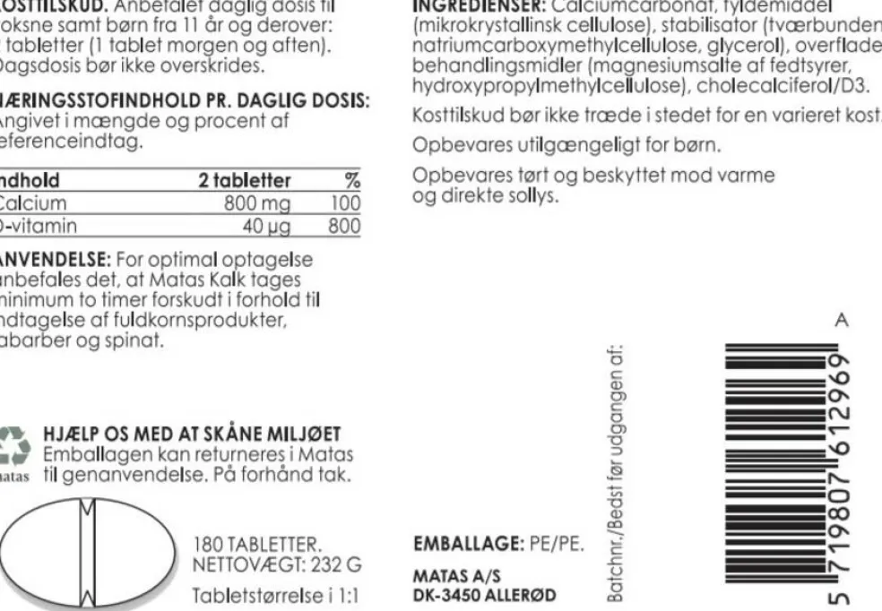 Calcium og D-vitamin bidrager til at vedligeholde normale knogler og tænder.