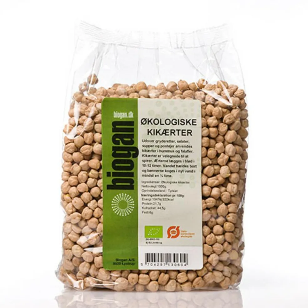 Kikærter (cicer arietinum) kaldes også garbanzobønner efter det spanske navn for ærten. Kikærter ligner ærter men har en rynket overflade.