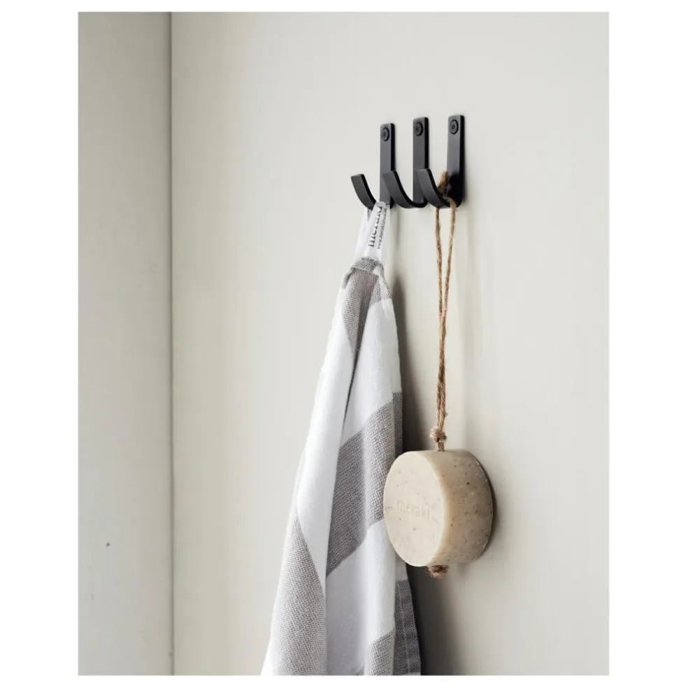 Det er ofte de små detaljer, som gør en stor forskel på dit badeværelse. Dette sæt med 3 knager i rustfri stål fra Meraki har en sort finish og et simpelt design, der passer til enhver indretning. Brug Thapsus-knagerne til dine håndklæder, men også til badekåber og kurve fyldt med dine plejeprodukter. En ideel løsning til et mindre badeværelse.