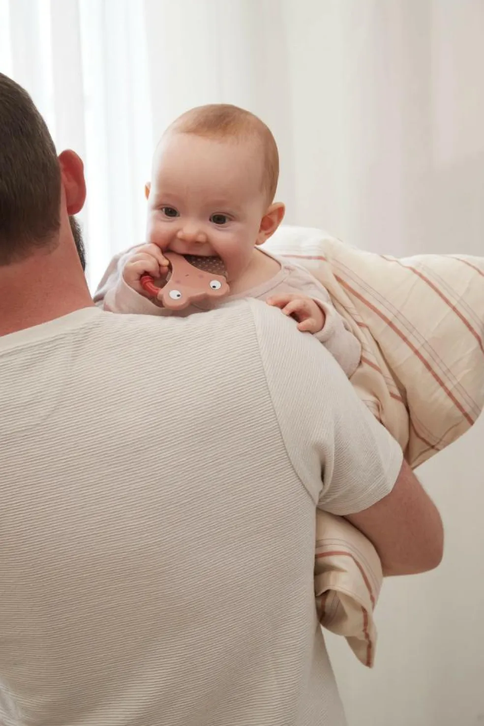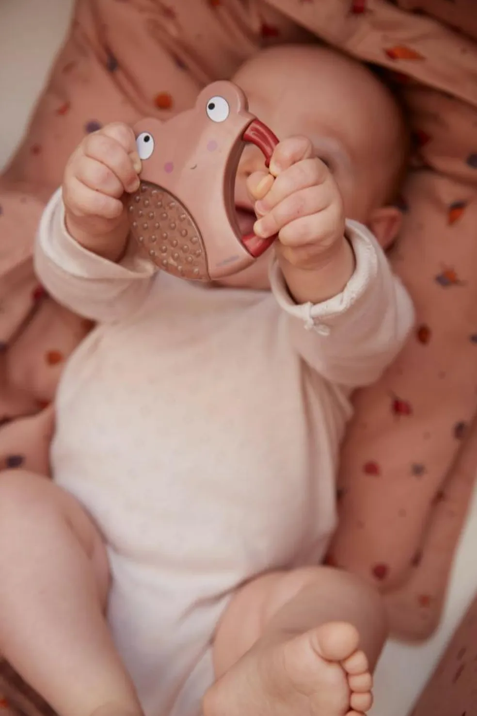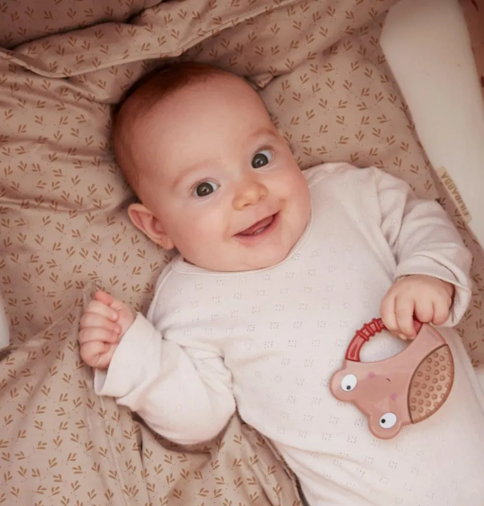 Det lille håndtag med struktur gør det nemt for barnet at gribe om ringen. Bideringene er designet med spændende strukturer og former, som stimulerer dit barns mund og hænder.