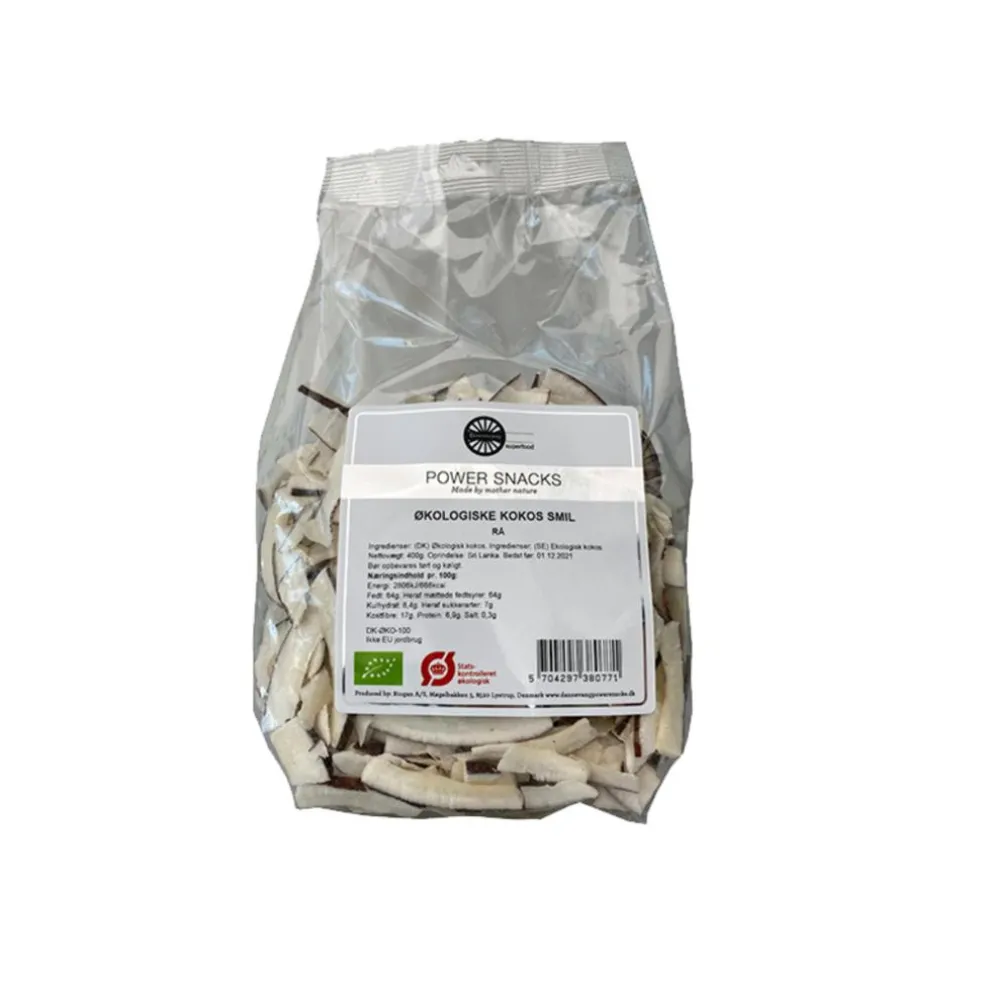 Usødet kokosnød kød. Kan spises som snack eller bruges i madlavning, bagning eller salater.