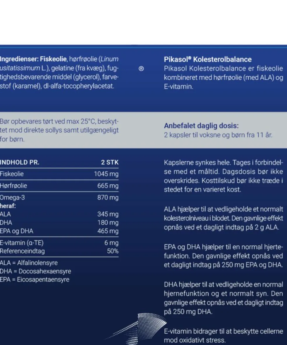 Gavnlig effekt opnås ved et dagligt indtag på 250 mg EPA og DHA.