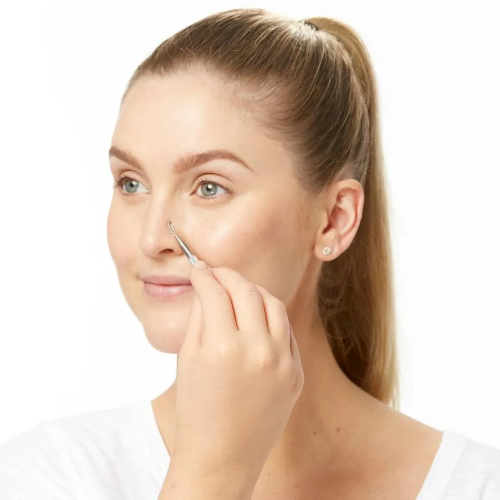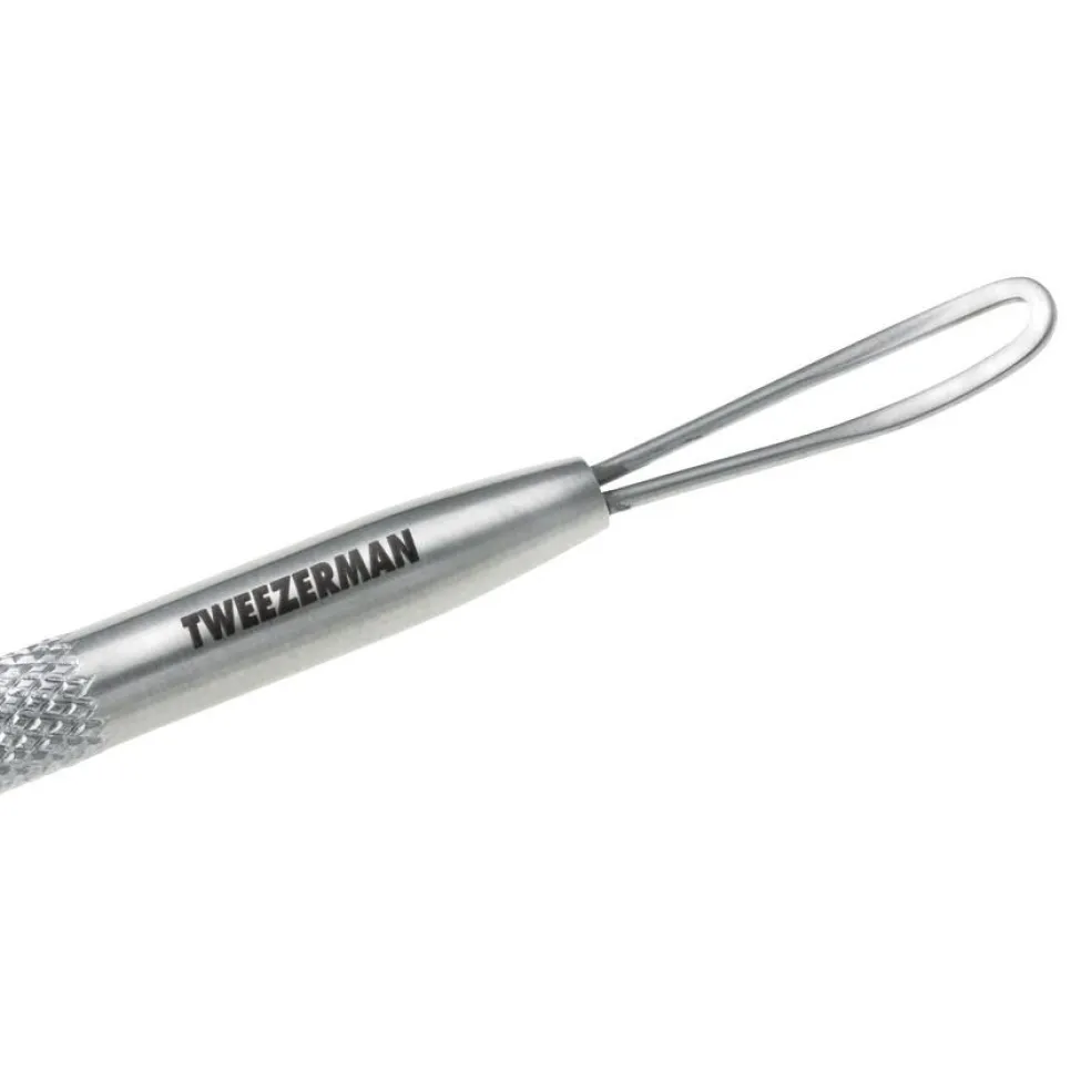 Fjern mørke og hvide hudorme sikkert og blidt med dette rustfri hudpleje værktøj med en løkke i hver ende. Et must til dig, der selv plejer en vanskelig hud. • Fjerner sorte og hvide hudorme sikkert og hygiejnisk i modsætning til fingrene, som kan forårsage infektion og ardannelse.• Lang flad løkke specielt designet til blidt og sikkert at presse hvide hudorme ud.• Mindre, vinklet løkke designet til effektivt at presse sorte hudorme ud uden at skade huden.• En speciel overflade sikrer et fast greb for ekstra komfort og kontrol. • Førsteklasses rustfri stål sikrer et holdbart værktøj som er let at rengøre.Anvendelse:Brug med stor forsigtighed. Sterilisér værktøjet før brug med sprit eller antibakteriel sæbe og varmt vand.1. Tag et varmt dampbad eller brug en varm vaskeklud til at åbne porerne. Anvend kun på vel renset hud.2. Med hensyn til hvide hudorme skal du vente indtil hudormen har åbnet sig og dernæst forsigtigt føre den lange flade løkke henover den for at fjerne det sidste fra poren.3. Brug modsatte endes mindre vinklede løkke til forsigtigt at presse den sorte hudorm ud uden at skade huden.4. Steriliser værktøjet efter brug med sprit eller antibakteriel sæbe og varmt vand.Pleje:Disinficer begge ender med isopropyl alkohol eller peroxid efter hver anvendelse. Værktøjet kan desinficeres i en autoklave eller med barbicid.