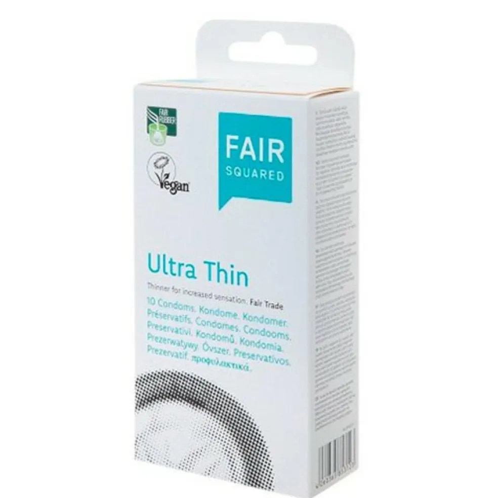 Fair Squared Ultra tynde kondom for større sensitivitet. Ultra tyndt, gennemsigtig, glat, cylindrisk formet kondom med reservoir.