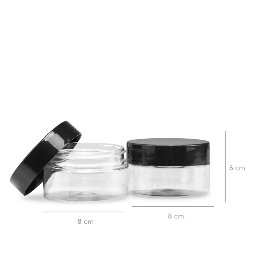 2 x 50 ml gennemsigtige krukker med låg, der kan genbruges i årevis! Krukkerne kan bruges til en række forskellige produkter, herunder creme eller flydende makeup. Krukkerne har den perfekte størrelse til rejsetasken, og er produceret af 100% PCR – PCR er genbrugsmaterialer fremstillet af kasserede plastprodukter. Ved at bruge 100% PCR reduceres forbruget af ny plastik og hjælper med at spare energi og fossile brændstoffer. Desuden har 100% PCR et 60% lavere CO2 aftryk end almindeligt plastik.