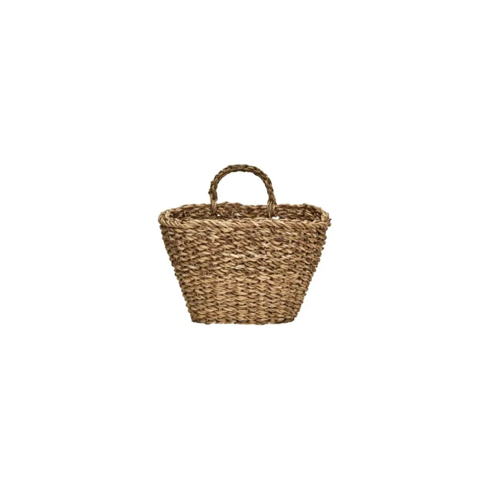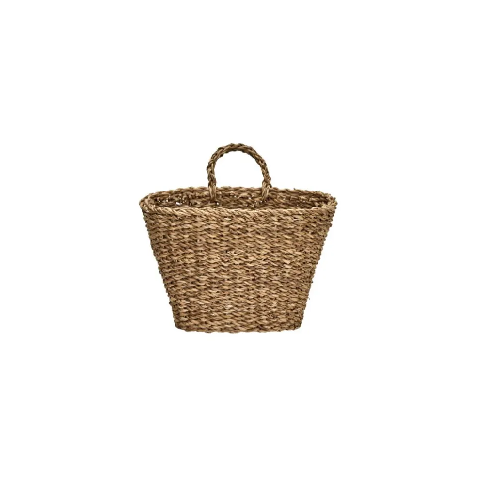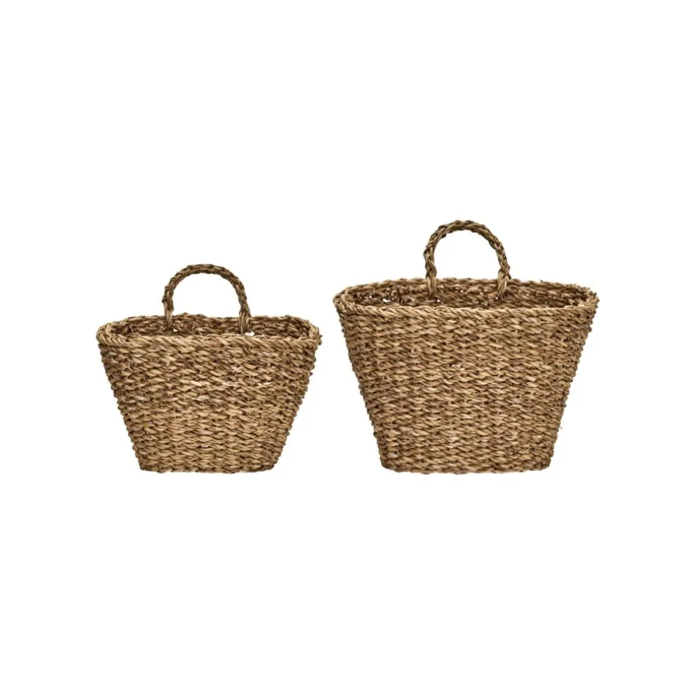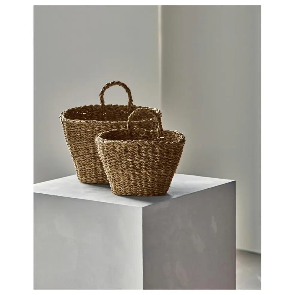 Håndflettede detaljer og praktiske hanke gør det let at hænge dem på knager i badeværelse, soveværelse eller køkken.