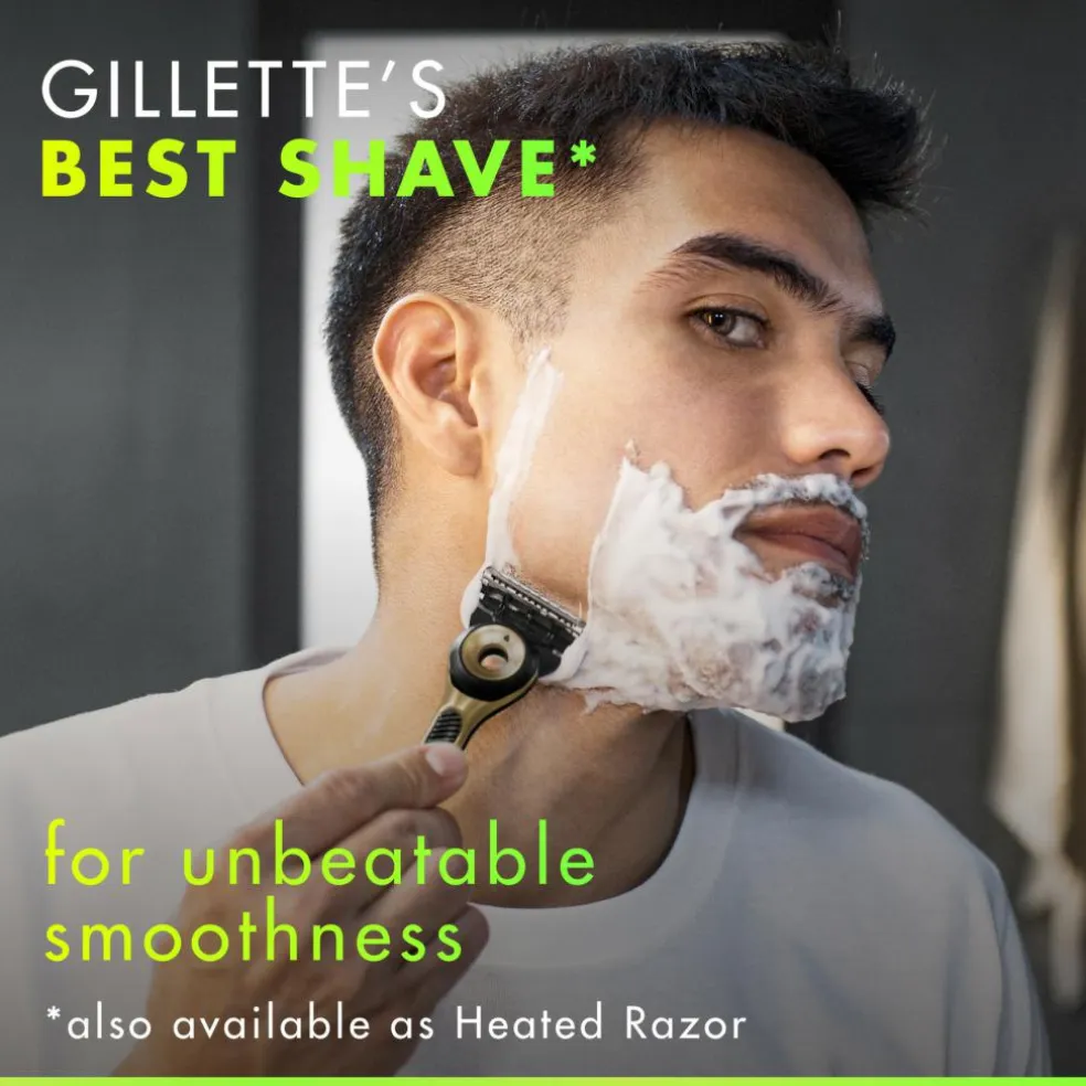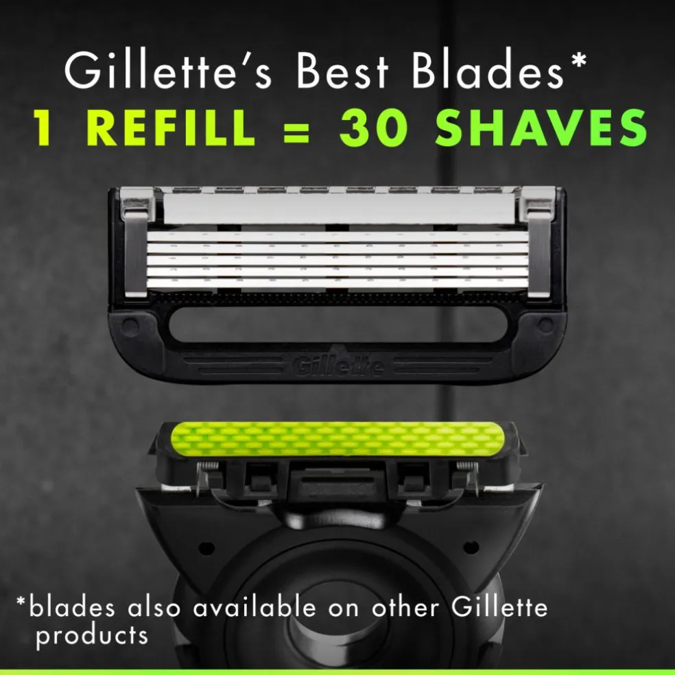 2D FlexDisc-teknologien former sig efter ansigtet for at sikre en behagelig kontakt i hvert eneste strøg. Med 5 af Gillettes bedste blade* (*blade fås også med andre Gillette-produkter) er denne barberskraber designet til en hurtig og nem barbering.